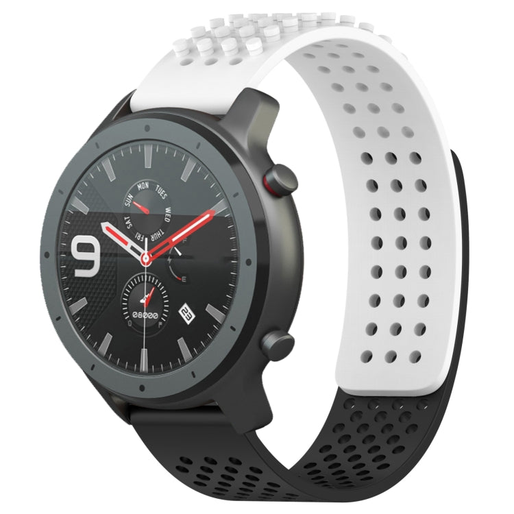 Correa de Reloj silicona para Amazfit GTR 47mm 22mm orificios transpirable con puntos 3D (Blanco + Negro)