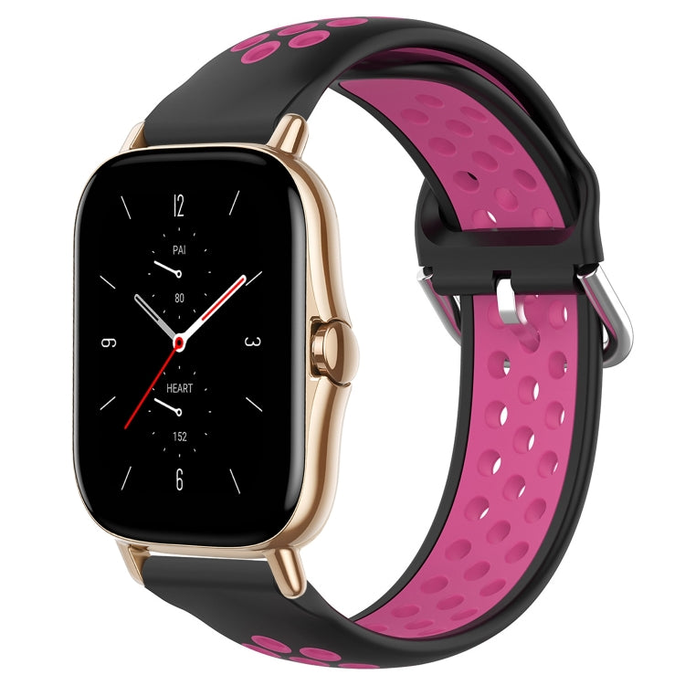 Correa de Reloj de Silicona Deportiva para Amazfit GTS 2 20mm Transpirable Perforada (Negro + Rojo Rosa)