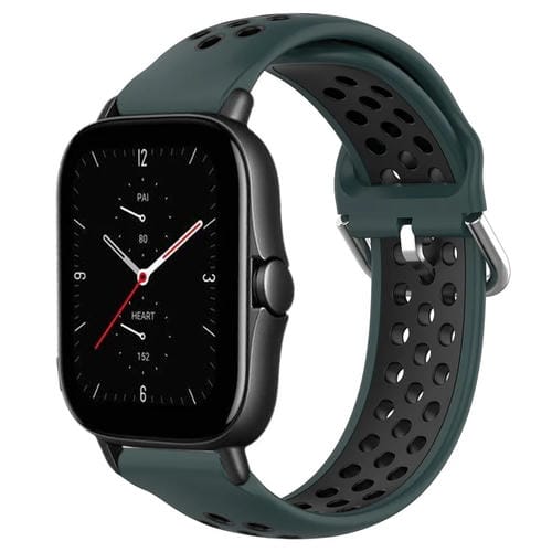 Correa de Reloj Amazfit GTS 2E 20mm Silicona Deportiva Transpirable Perforada (Verde Oliva + Negro)