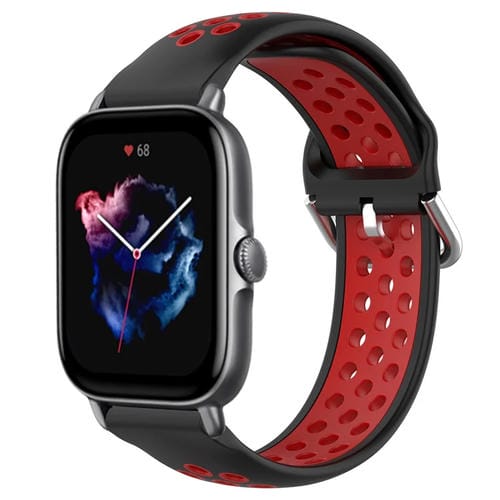 Correa de Reloj 20mm para Amazfit GTS 3 Silicona Deportiva Transpirable Perforada (Negro + Rojo)