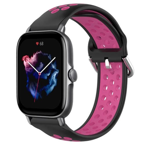 Correa de Reloj Amazfit GTS 3 20mm Silicona Deportiva Transpirable Perforada (Negro + Rojo Rosa)