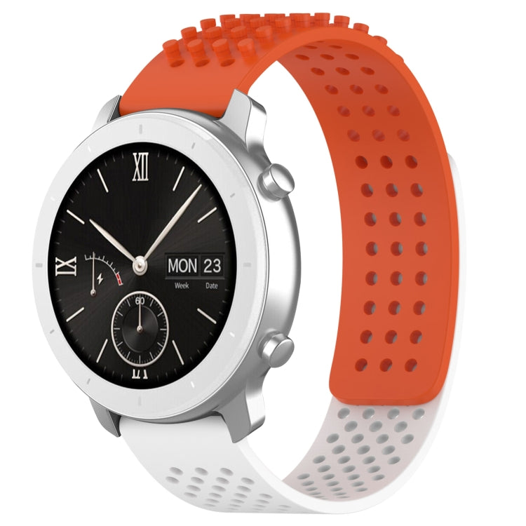 Correa de Reloj Amazfit Pop Silicona Puntos 3D Transpirables Orificios 20mm (Naranja + Blanco)