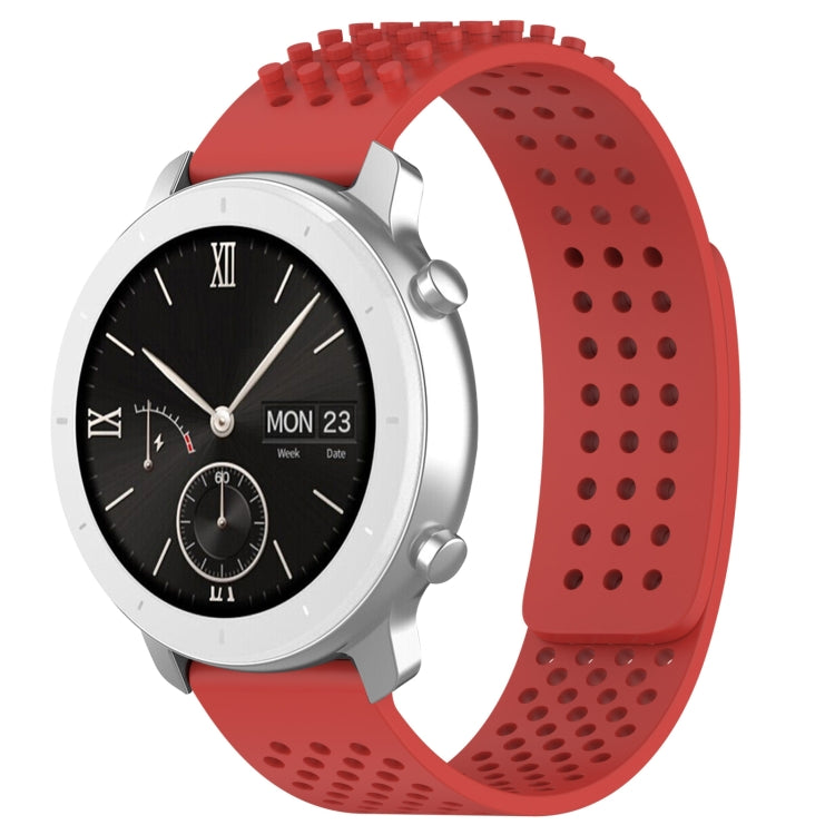 Correa de Silicona para Amazfit Pop con Puntos 3D Transpirables y Orificios de 20mm (Rojo)