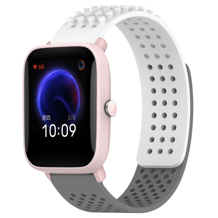 Correa de Silicona para Amazfit Pop Pro 20mm con Puntos 3D Transpirables (Blanco + Gris)
