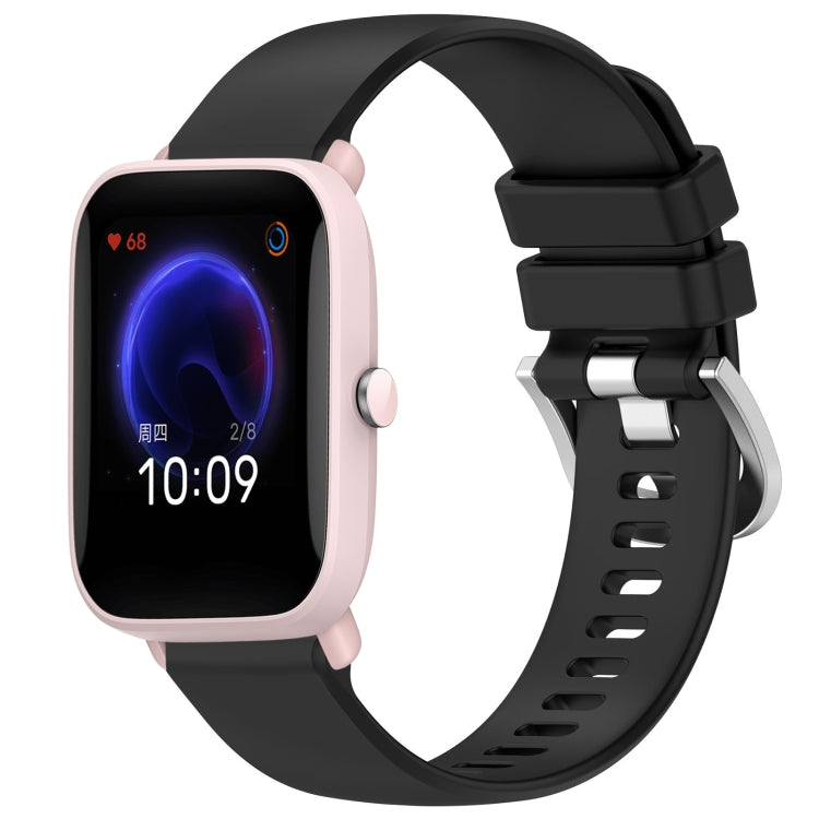 Correa de Reloj Silicona para Amazfit Pop Pro Pop Bip U con Hebilla Plateada Líquida Brillante 20mm (Negro)