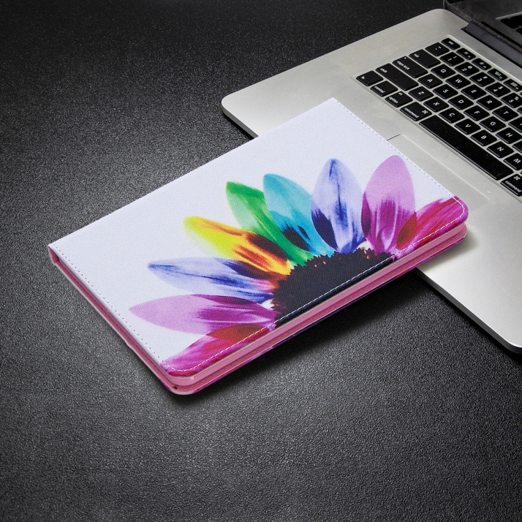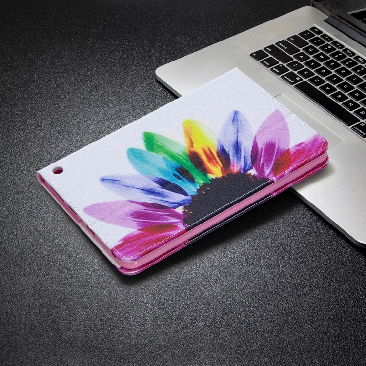Funda de cuero para Amazon Kindle Fire HD8 (2020) con patrón de colores, tapa horizontal, soporte y ranuras para tarjetas (Girasol)