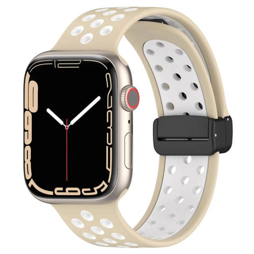 Correa de Silicona para Apple Watch 3 42mm con Hebilla Magnética (Blanco Caqui)