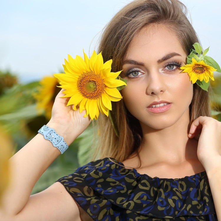Correa de Silicona para Apple Watch Se 2022 44mm con Relieve de Girasol (Azul Claro)
