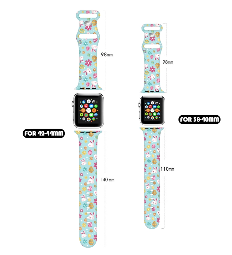 Para Apple Watch Series 3 42mm Correa de Reloj de Silicona con Hebilla de Mariposa y Estampado de Pascua (Verde Huevo de Pascua)