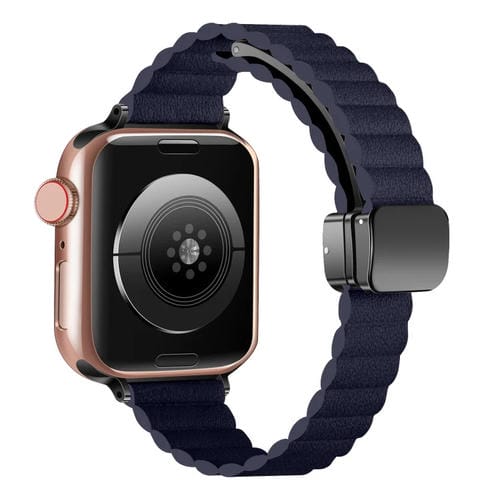 Correa para Apple Watch Series 3 42mm con Hebilla Plegable Magnética y Ondulación de Agua (Azul Índigo)