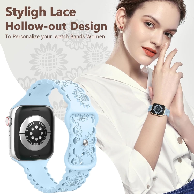 Correa de Silicona para Apple Watch Series 8 45mm con Relieve de Girasol (Azul Claro)