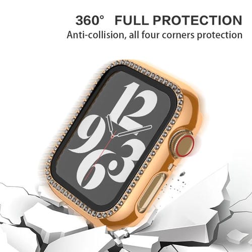 Caja de Reloj para Apple Watch Series 9/8/7 45mm PC con Diamantes y Película (Oro Rosa)