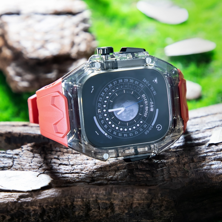 Correa de Caja Híbrida TPU para Apple Watch Ultra 49mm (Rojo Claro Negro)