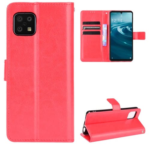 Funda de Cuero para Aquos Sense6 Crazy Horse Texture Horizontal Flip con Soporte y Ranuras para Tarjetas (Rojo)