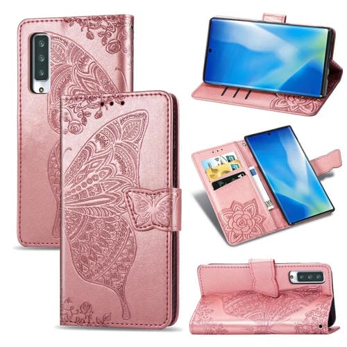 Funda de Cuero para Arrows Nx9 F-52A Butterfly Love Flower con Tapa Horizontal, Soporte, Ranura para Tarjeta y Cordón (Oro Rosa)