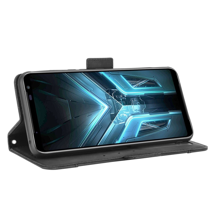 Estuche de Cuero para Asus Rog Phone 3 Zs661Ks con Diseño de Pantorrilla y Ranura para Tarjeta (Negro)