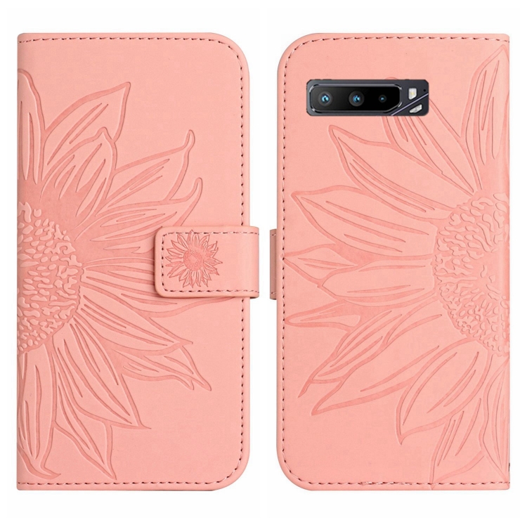 Funda de Cuero Flip para Asus Rog Phone 3 Zs661Ks con Cordón y Diseño Sun Flower (Rosa)