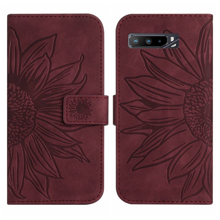 Funda de Cuero con Tapa y Cordón para Asus Rog Phone 3 Zs661Ks Skin Feel Sun Flower (Rojo Vino)