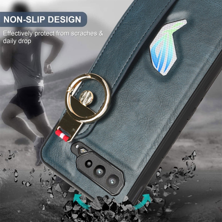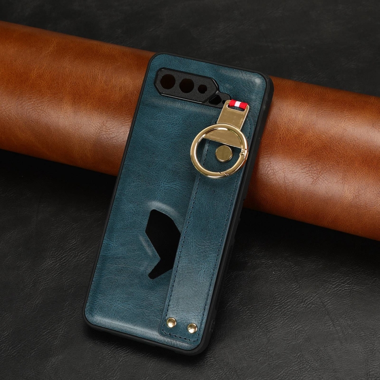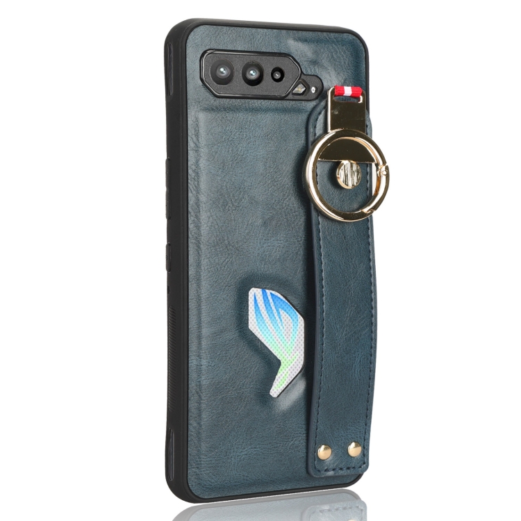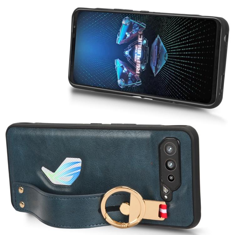 Funda Trasera de Cuero para Asus Rog Phone 5 Zs673Ks con Muñequera (Azul)