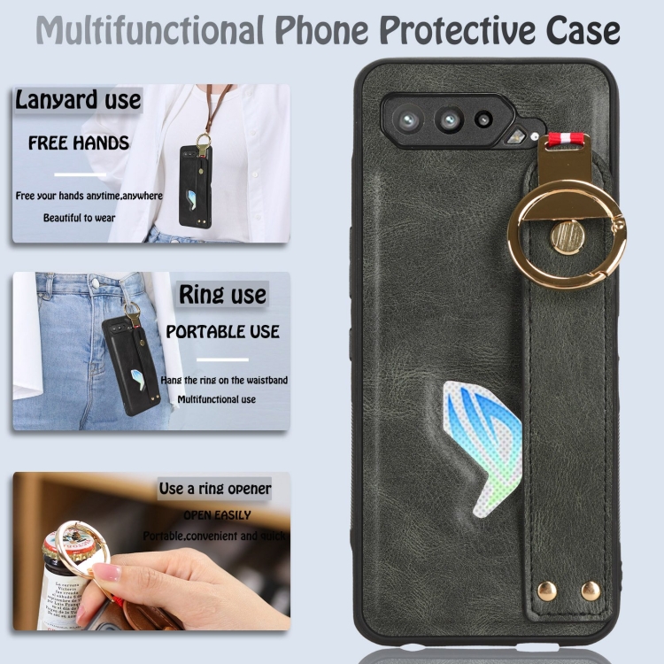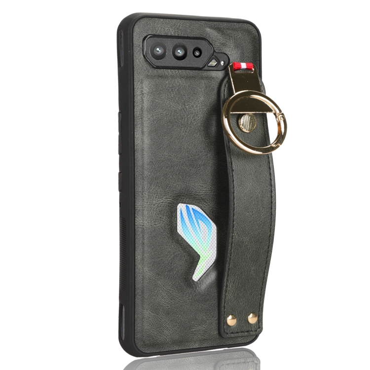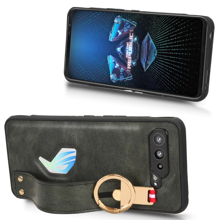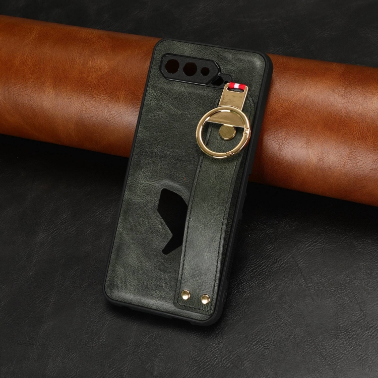 Funda Trasera de Cuero con Muñequera para Asus Rog Phone 5 ZS673KS (Verde)