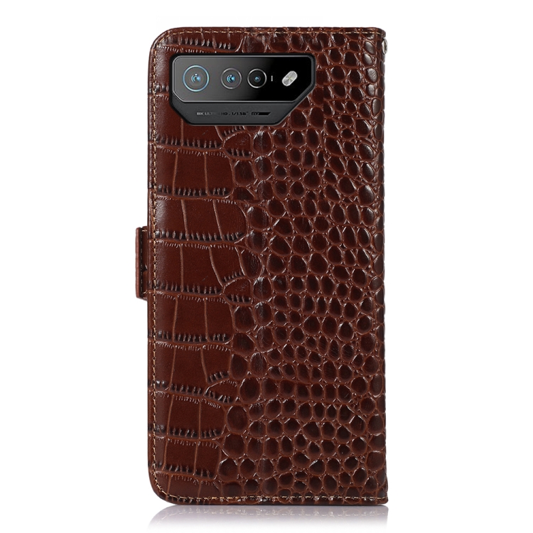 Funda para Asus Rog Phone 7 de Cuero de Vaca Capa Superior Cocodrilo (Marrón)