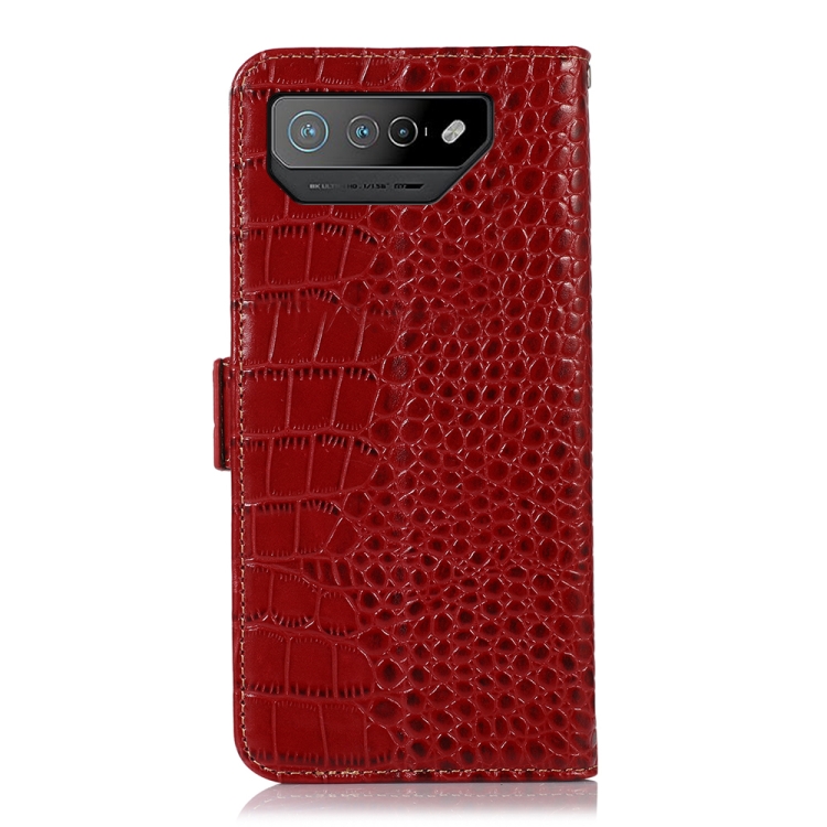 Funda de Teléfono Asus Rog Phone 7 Cuero de Vaca Capa Superior Cocodrilo (Rojo)