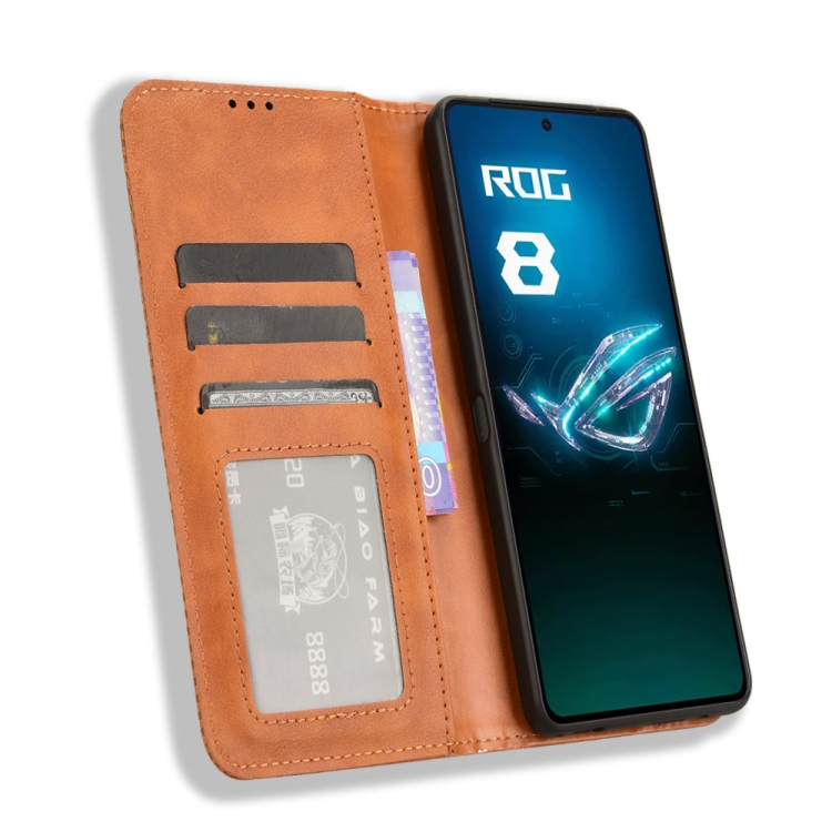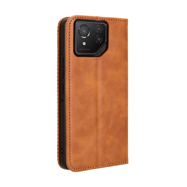 Funda para Asus Rog Phone 8/8 Pro de Cuero con Textura Retro y Hebilla Magnética (Marrón)