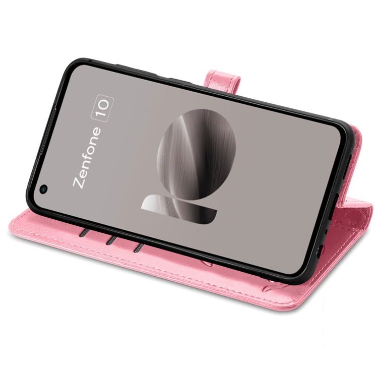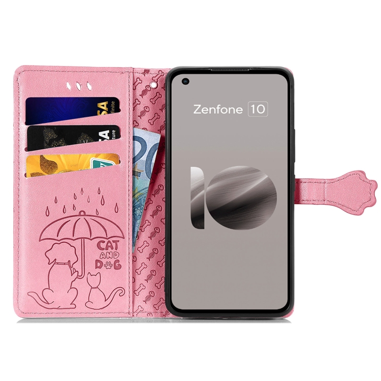 Funda de Cuero con Relieve para Asus Zenfone 10 Gatos y Perros (Rosa)
