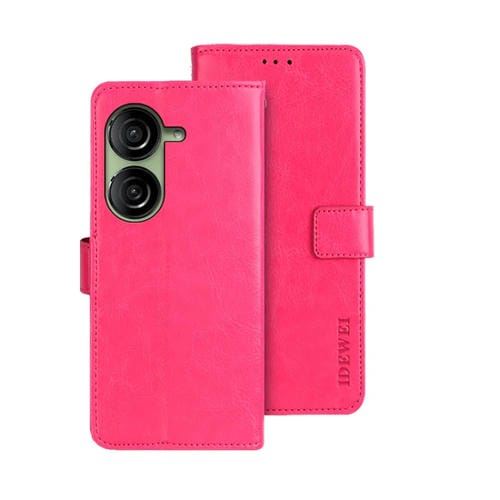 Funda de Cuero Idewei Crazy Horse para Asus Zenfone 10 con Soporte (Rojo Rosa)