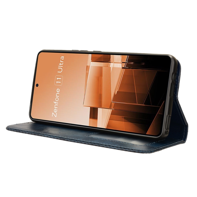 Funda para Asus Zenfone 11 de Cuero con Textura Retro y Hebilla Ultra Magnética (Azul)