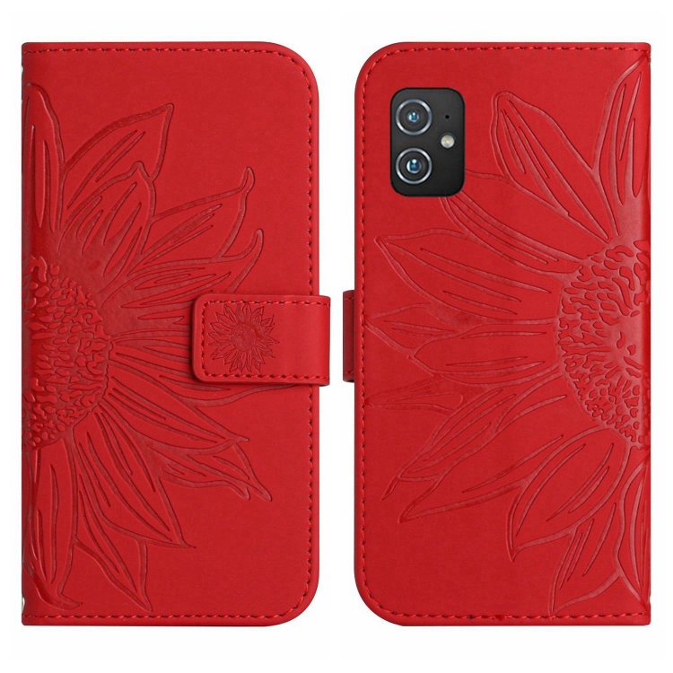 Funda de Cuero Flip para Asus Zenfone 8 ZS590KS con Cordón y Diseño Sun Flower (Rojo)
