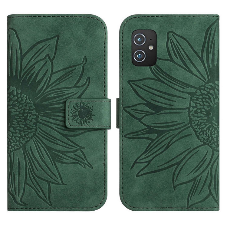 Funda de Cuero Flip para Asus Zenfone 8 ZS590KS con Cordón y Diseño Sun Flower (Verde)
