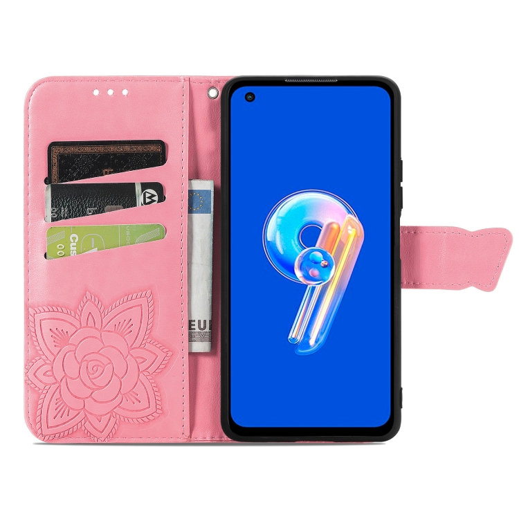 Estuche para Asus Zenfone 9 Butterfly Love Flower de Cuero en Relieve (Rosa)