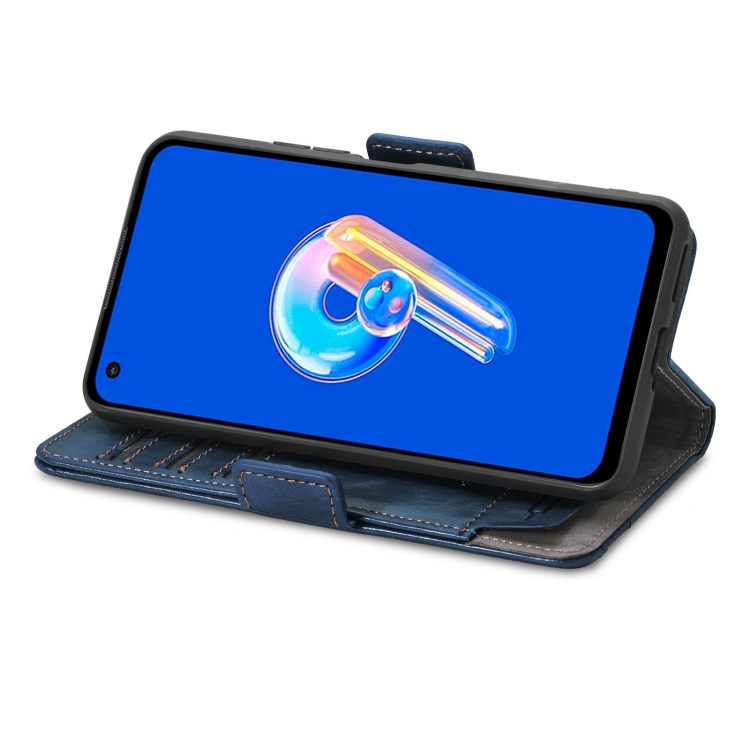 Funda de Cuero Caseneo Splicing Dual Magnetic Hebilla para Asus Zenfone 9 (Azul)