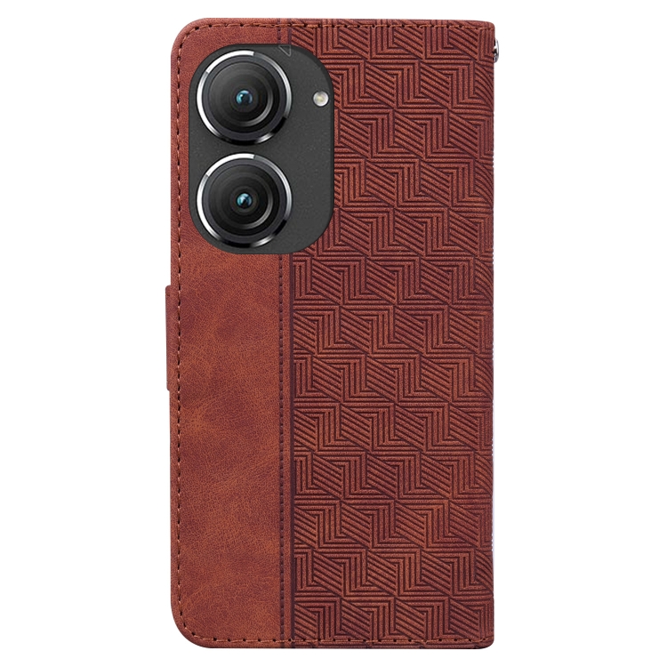 Estuche de Cuero para Asus Zenfone 9 con Tapa en Relieve Geométrico (Marrón)