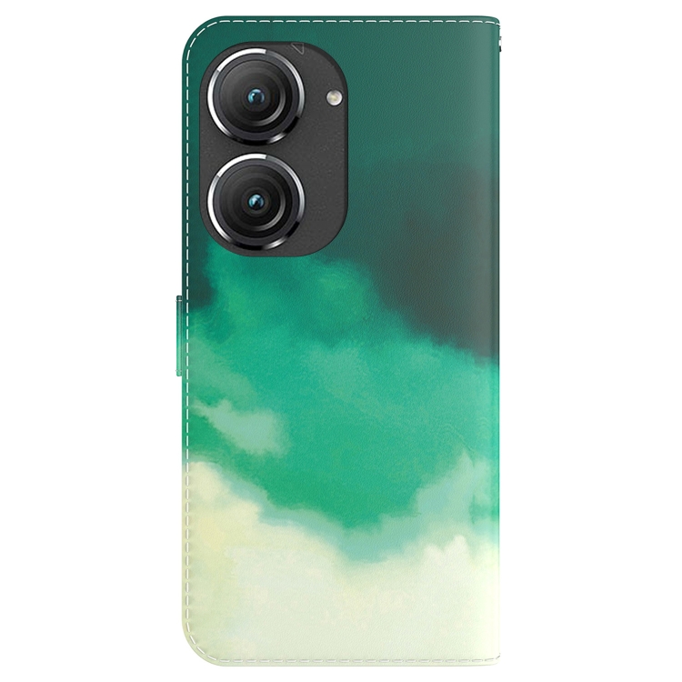 Funda para Asus Zenfone 9 con Tapa de Cuero y Patrón de Acuarela (Verde Cian)