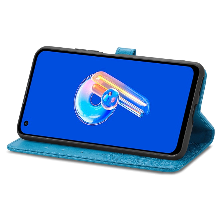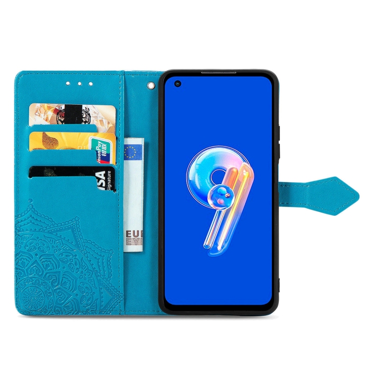 Estuche para Asus Zenfone 9 Mandala Flower de Cuero en Relieve (Azul)