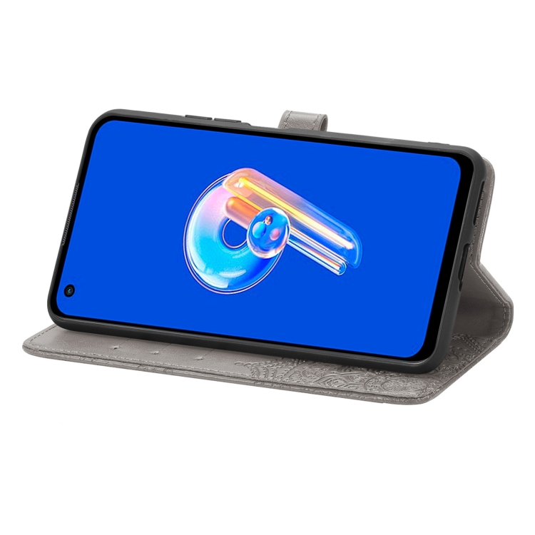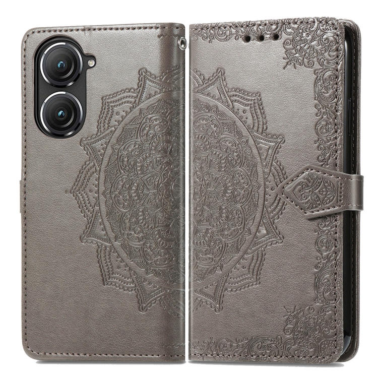 Estuche para Asus Zenfone 9 Mandala Flower de Cuero en Relieve (Gris)