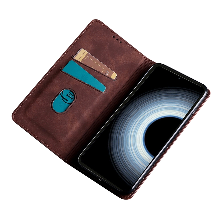 Funda para Asus Zenfone 9 Skin Feel Flip Horizontal Magnética de Cuero (Marrón Oscuro)