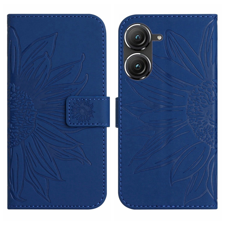 Funda de Cuero Flip para Asus Zenfone 9 con Cordón y Diseño Sun Flower (Azul Oscuro)