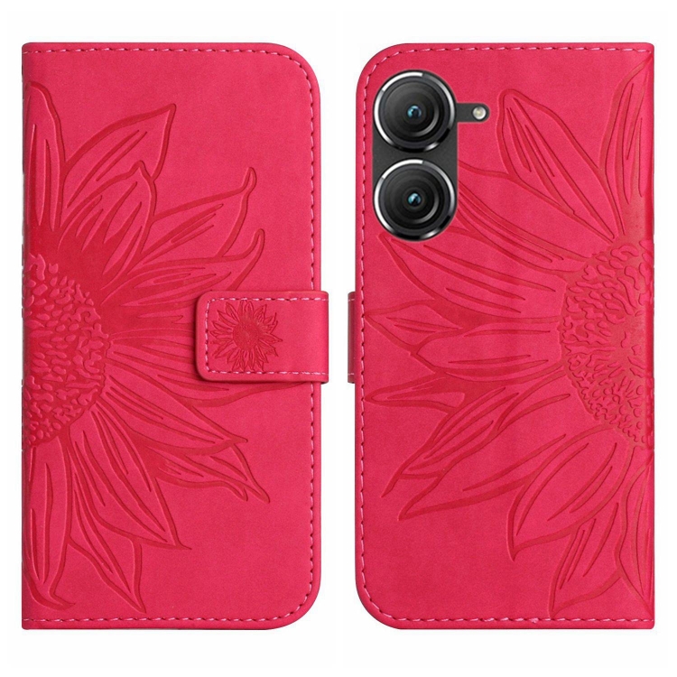 Funda Flip de Cuero para Asus Zenfone 9 con Cordón y Diseño Sun Flower (Rose Red)