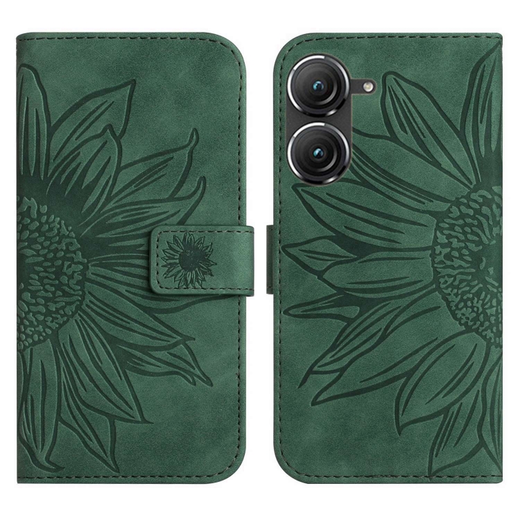 Funda Flip de Cuero para Asus Zenfone 9 con Cordón y Diseño Sun Flower (Verde)