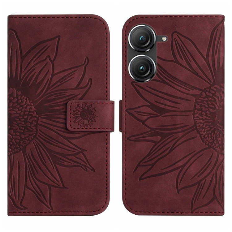 Funda de Cuero para Asus Zenfone 9 con Tapa y Cordón Skin Feel Sun Flower (Rojo Vino)