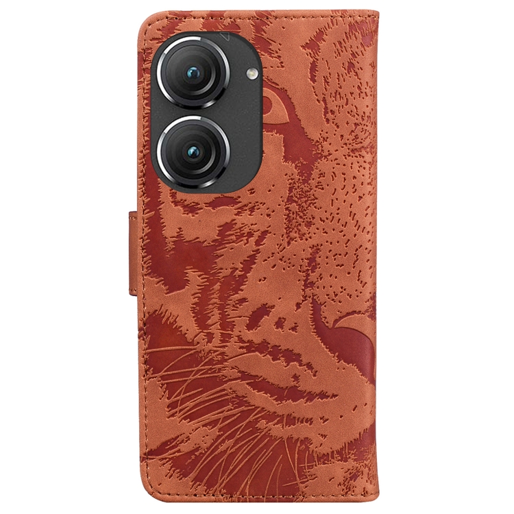 Funda de Cuero Flip Asus Zenfone 9 Tiger Embossing Pattern para Teléfono (Marrón)