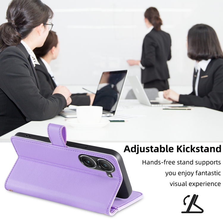 Funda de Cuero para Asus Zenfone 9 y Zenfone 9Z con Textura Sheep y Cremallera (Púrpura)