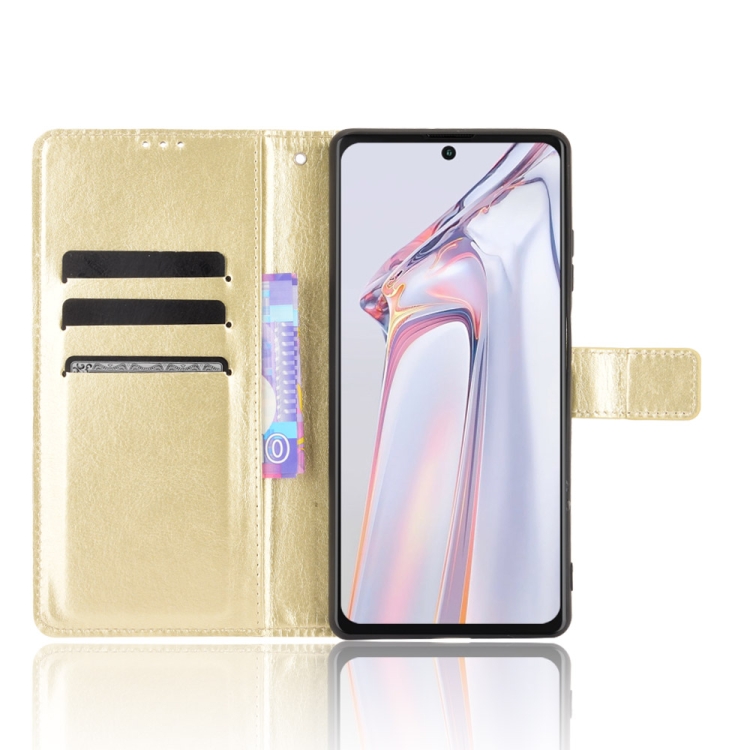 Funda de Cuero BlackView A100 Crazy Horse Textura Horizontal con Soporte, Ranuras y Cordón (Oro)