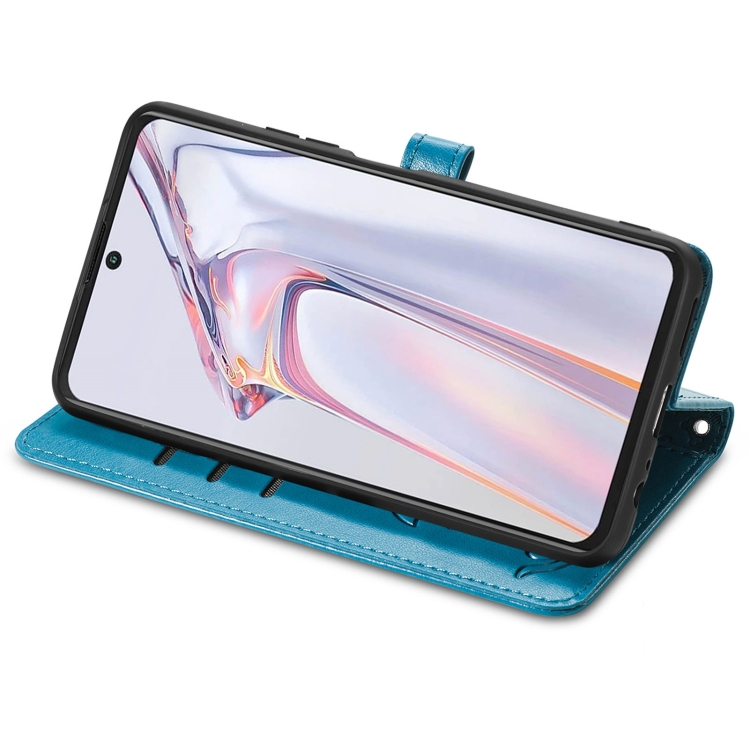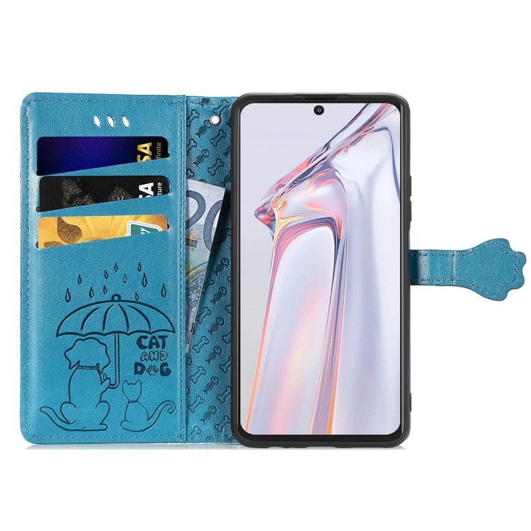 Funda de Cuero BlackView A100 con Patrón de Gato, Soporte, Ranuras y Cordón (Azul)