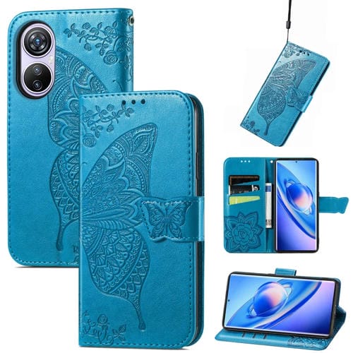 Funda de Cuero BlackView A200 Pro Butterfly Love Flower en Relieve (Azul)