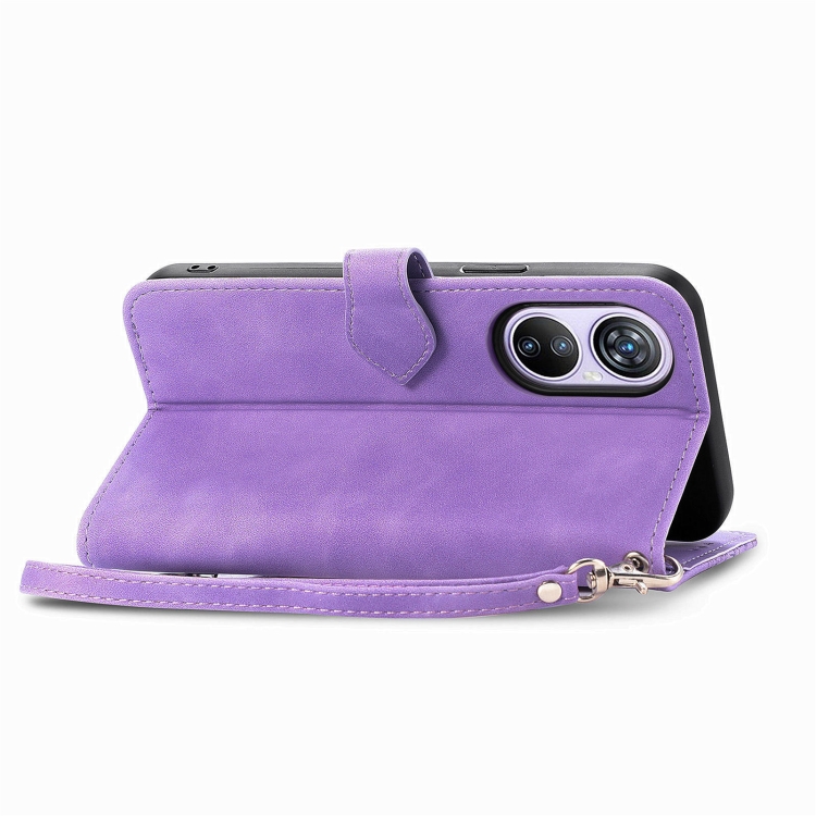 Funda de Cuero con Cremallera y Flores en Relieve para BlackView A200 Pro (Púrpura)