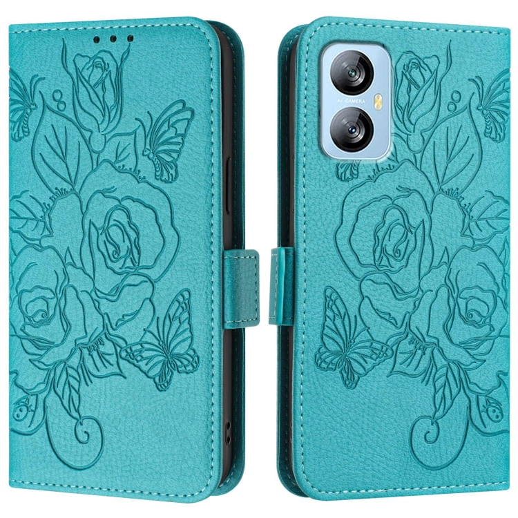 Funda de Cuero Antirrobo RFID para BlackView A52 con Relieve Rosa (Azul Claro)
